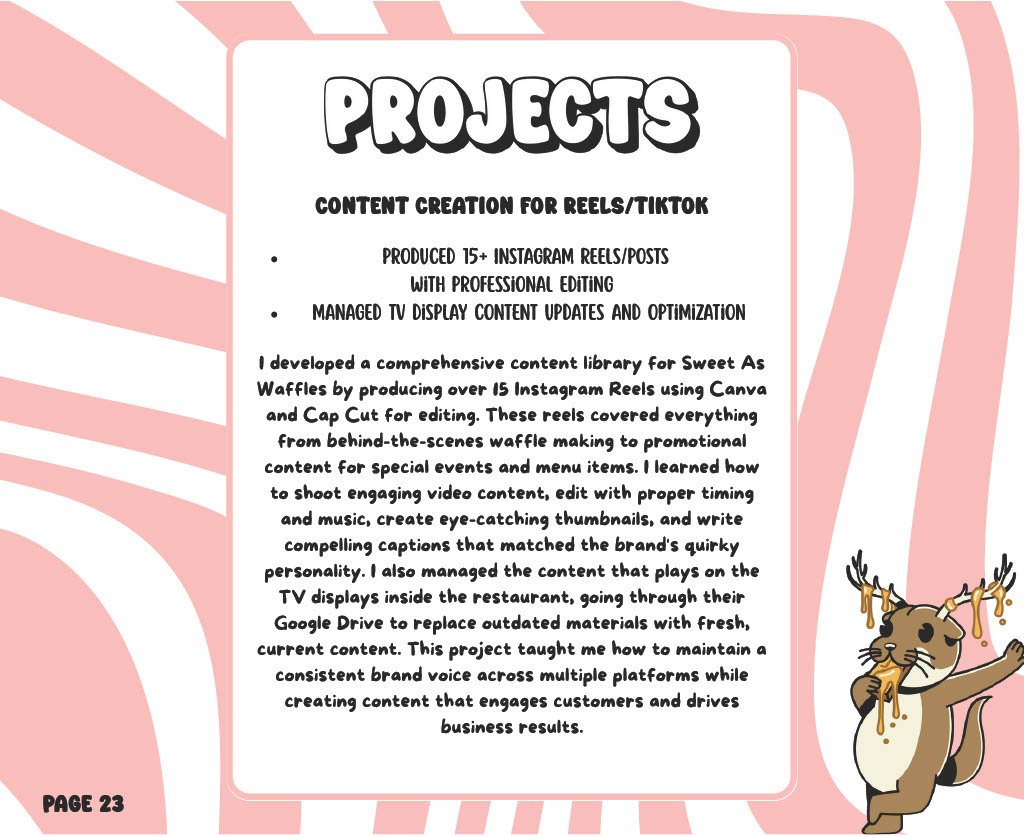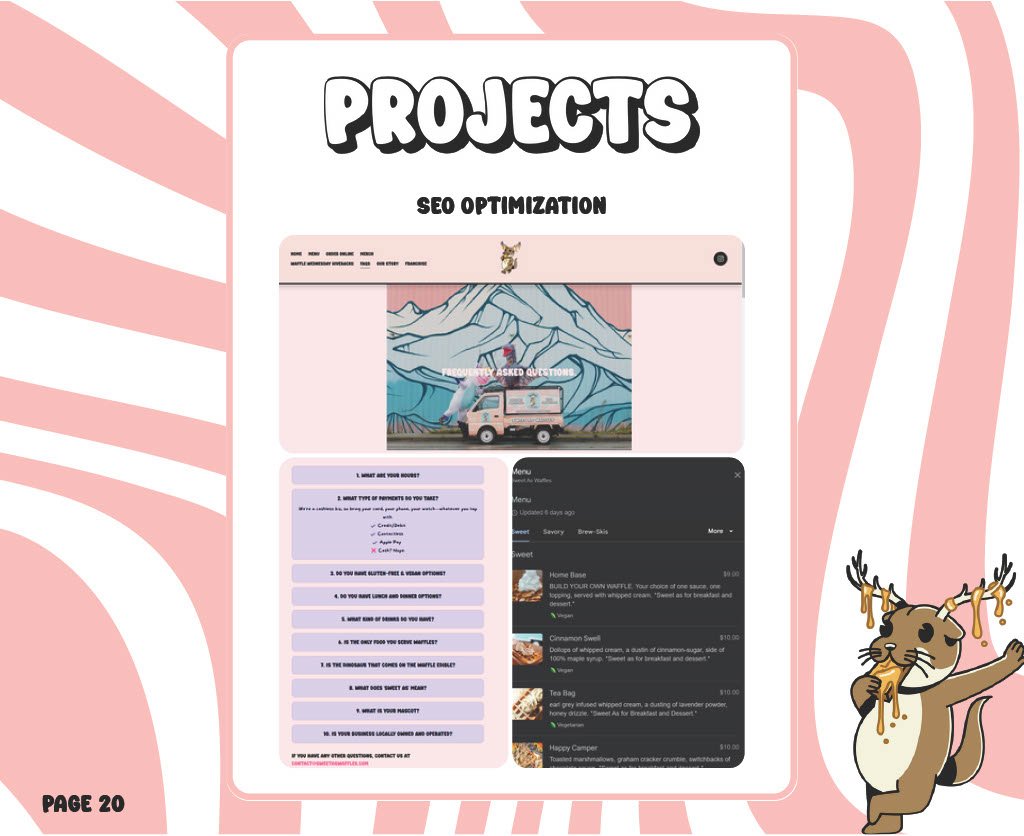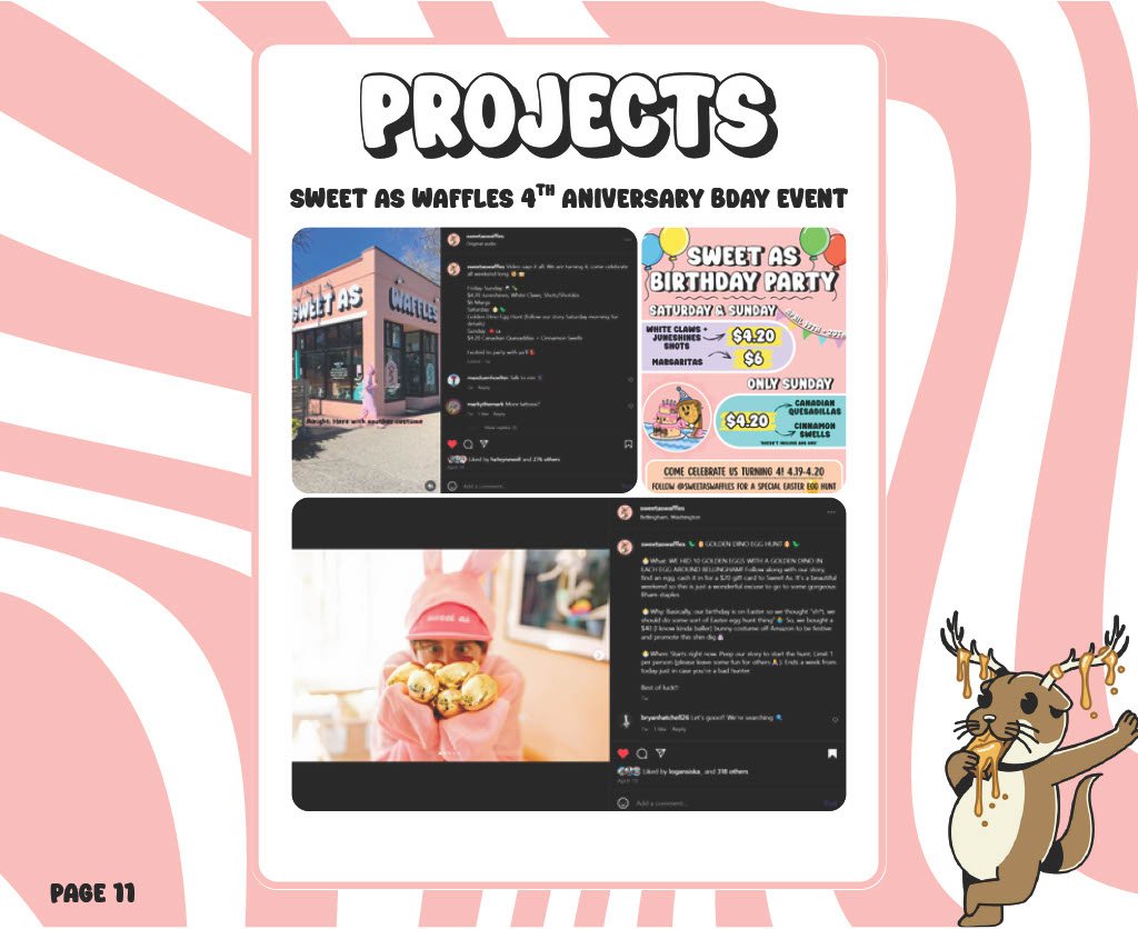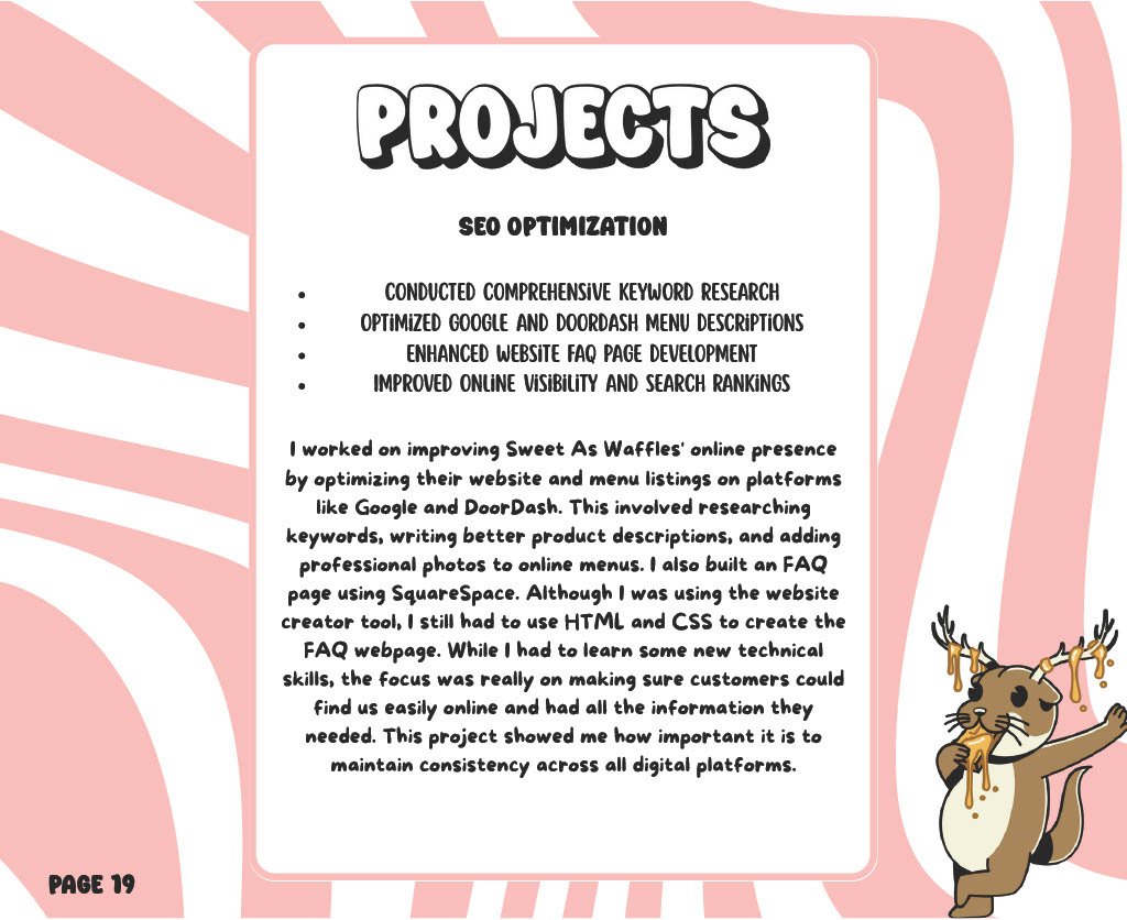 Check out the awesome projects I got to work on at Sweet As Waffles during my Spring 2025 quarter, featuring digital marketing (SEO and website development), social media management, and graphic design projects!